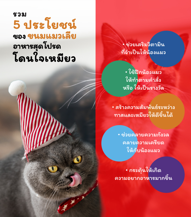 ใครที่มีสัตว์เลี้ยงอยู่ที่บ้านอย่างน้องแมว เมื่อกล่าวถึง “ขนมแมวเลีย” เชื่อว่าน้อยคนนักที่จะไม่รู้จัก แถมบางคนยังอาจเบือนหน้าหนี หรือรีบปฏิเสธทันทีที่จะให้น้องแมวของตนเองลองกินขนมแมวเลียค่ะ ด้วยกังวลว่า ขนมแมวเลียอาจจะส่งผลไม่ดีต่อสุขภาพของน้องแมวได้ แต่ขนมแมวเลียก็ไม่ได้เป็นผู้ร้ายเสมอไป อย่างที่หลาย ๆ คนเข้าใจกันเสียทีเดียวค่ะ เพราะขนมชนิดนี้ก็มีประโยชน์อยู่ไม่น้อยเลยล่ะค่ะ ซึ่งวันนี้ได้รวบรวมมาฝากกันถึง 5 ข้อ จะมีอะไรบ้าง ตามมาอ่านกันดีกว่าค่ะ